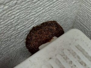 稲美町モデルハウス室外機に作られたアシナガバチの巣